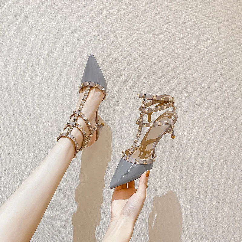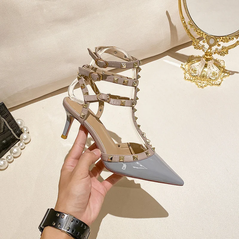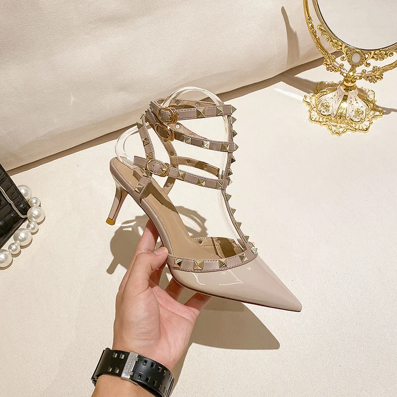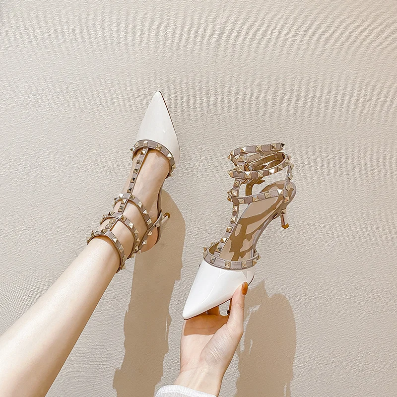 60mm Heel Point Toe Studded Wedding Prom Sandals Stilettos Slingback Shoes