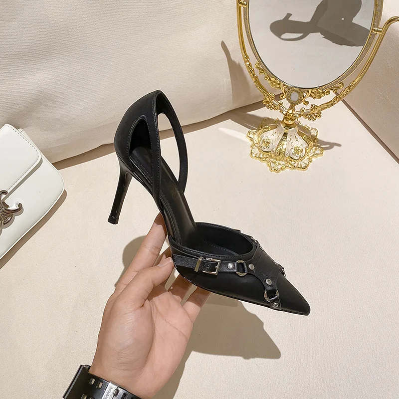 80mm Heel Pointed Toe Black Prom Sandals High Pumps Party Stilettos Shoes
