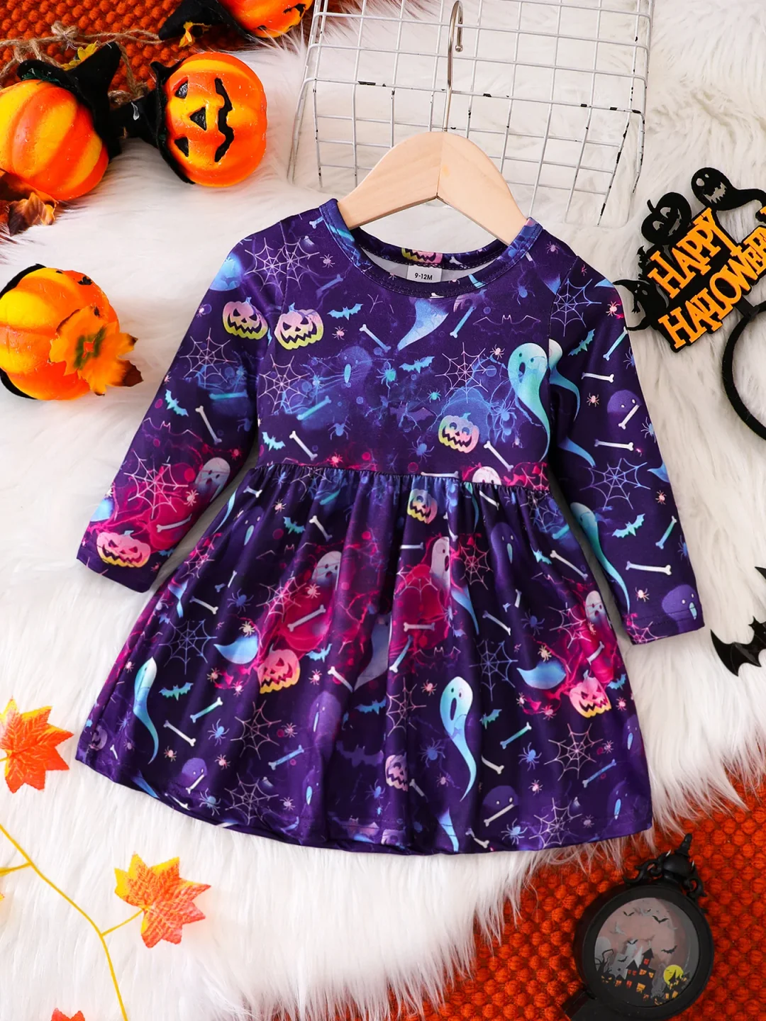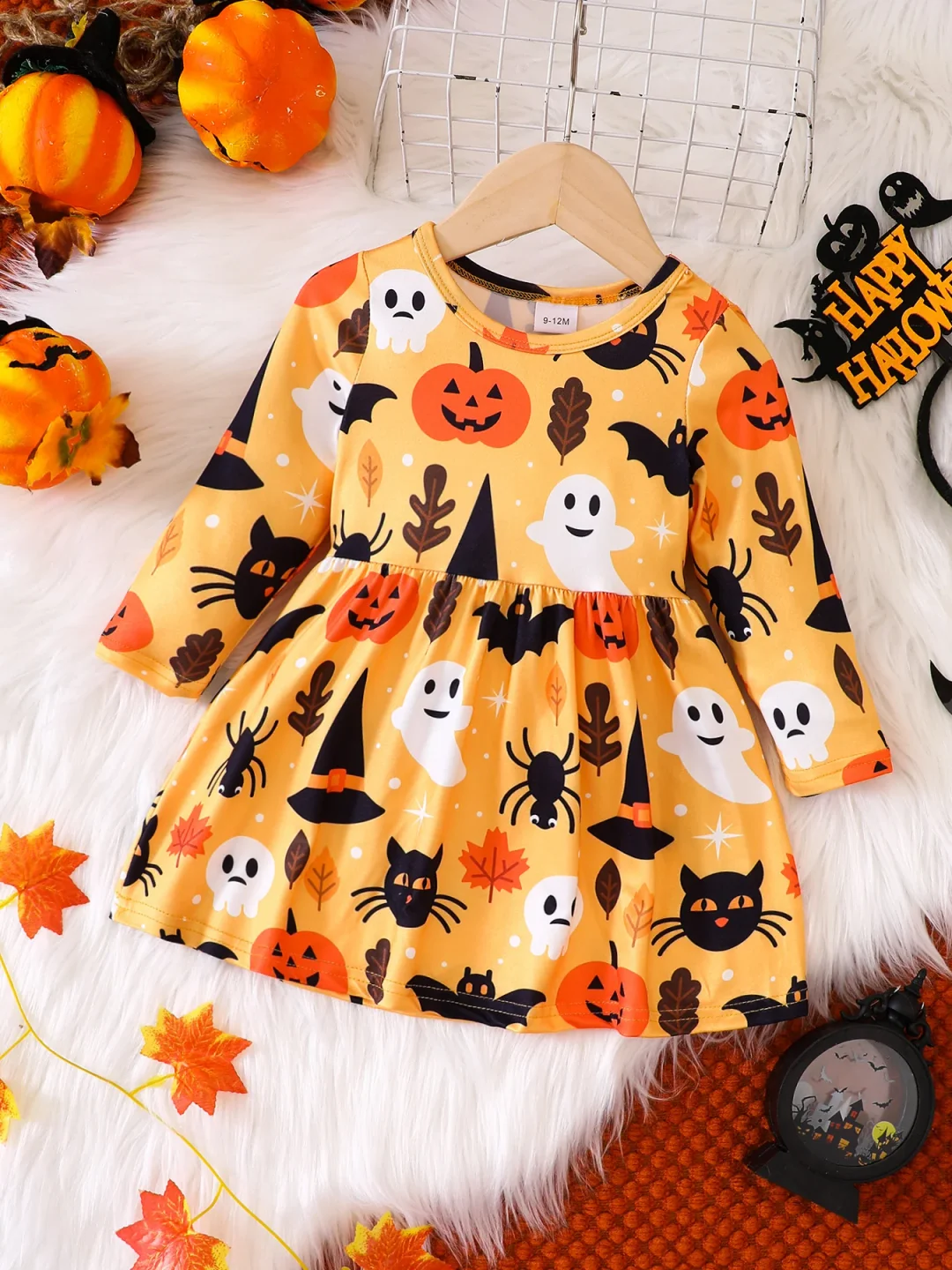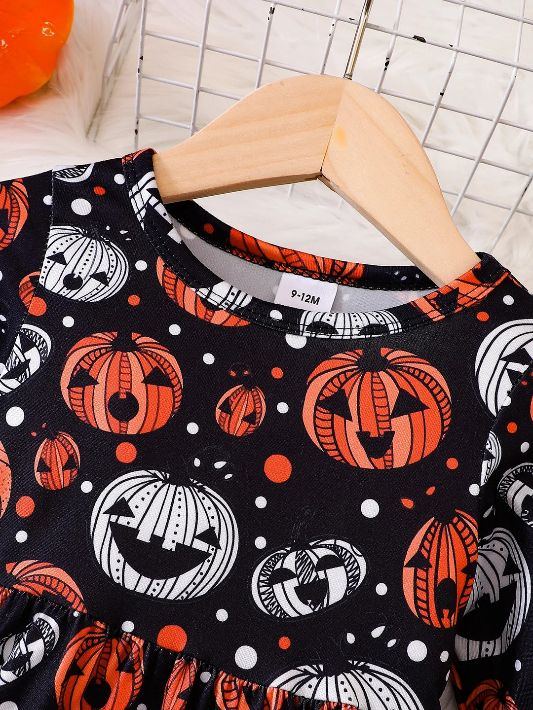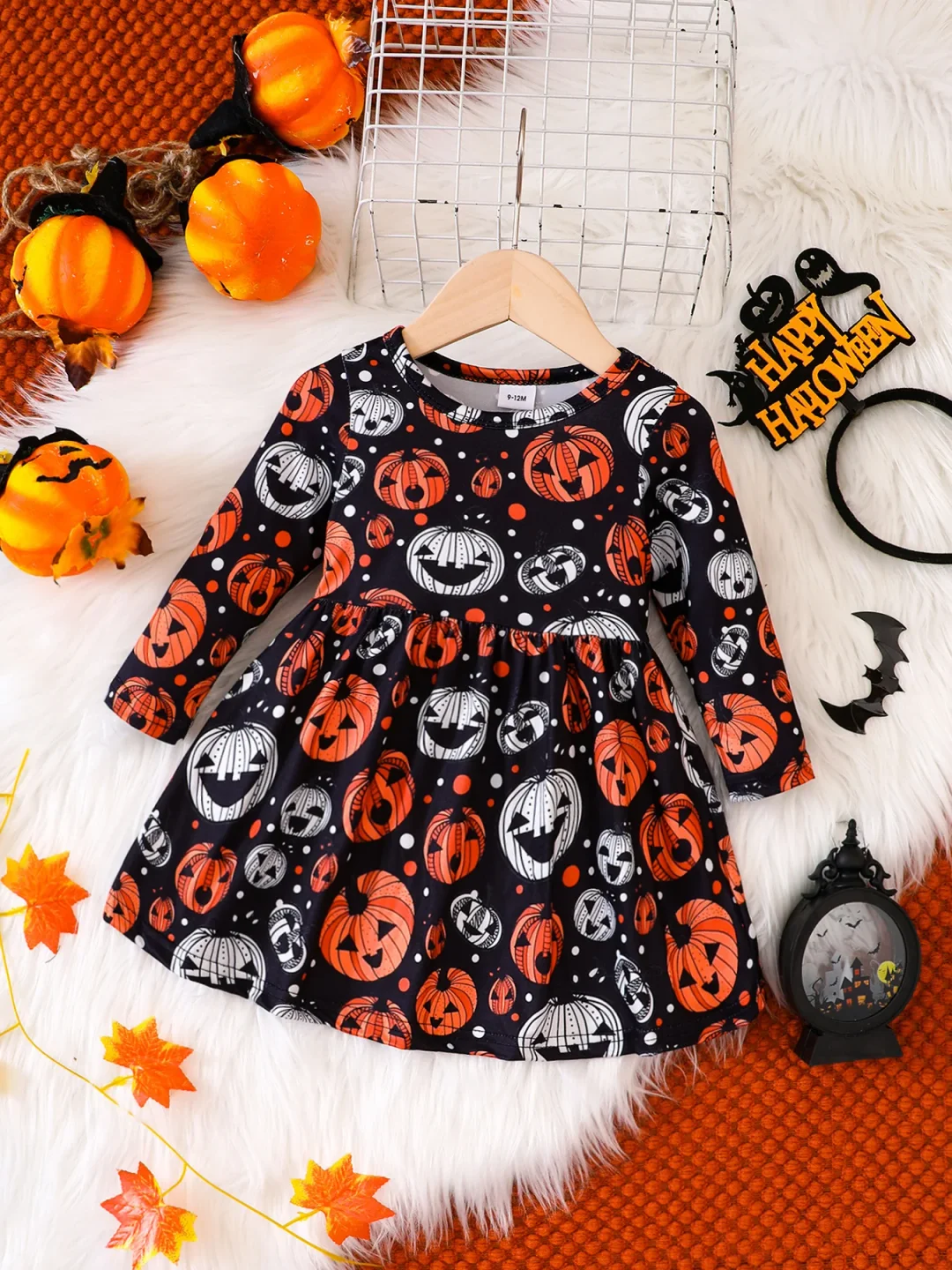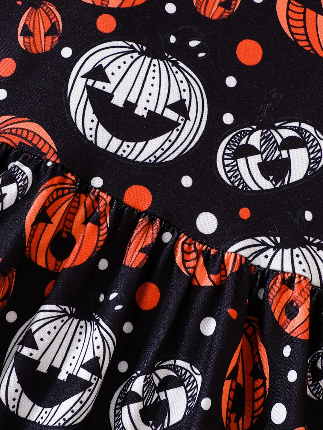 The standout feature of this dress is its irresistibly cute pumpkin print.