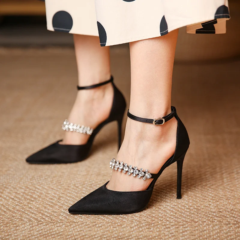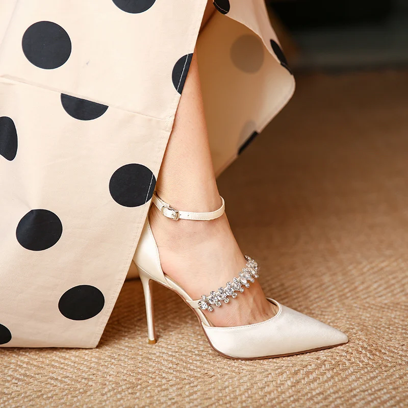 80mm Heels Wedding Banquet Fairy Rhinestone Slingback Stilettos Shoes