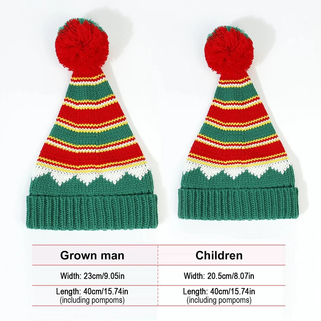 Christmas Hat: This hat is designed with different color stripes related to Christmas, and the color is naturally bright. The top of the pointed hat is designed with a pompom, cute and full of vitality. Create a strong Christmas atmosphere.