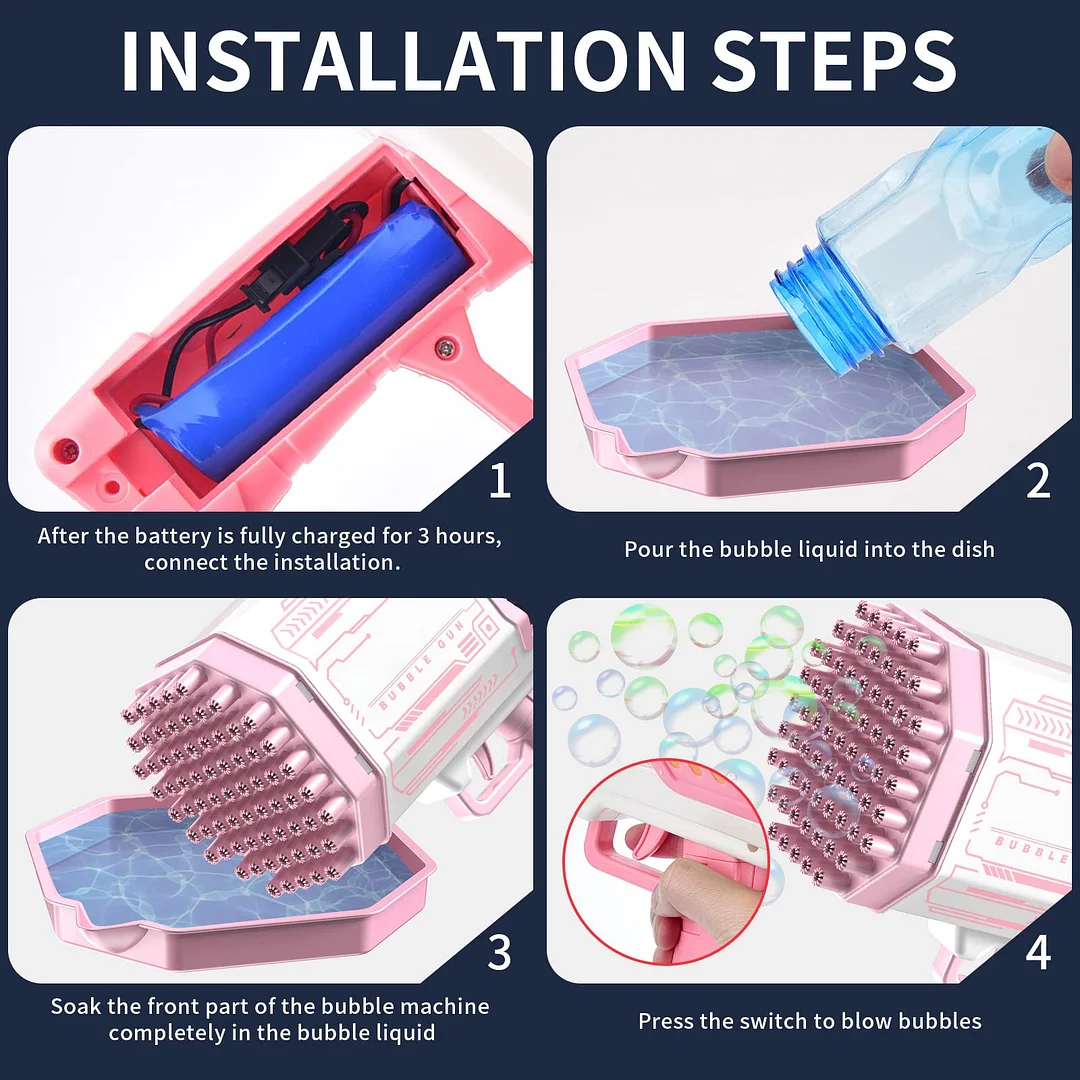 Electric Bubble Maker - Even in the absence of wind, the fan of the bubble maker can be driven quickly to blow out a large number of rainbow bubbles.