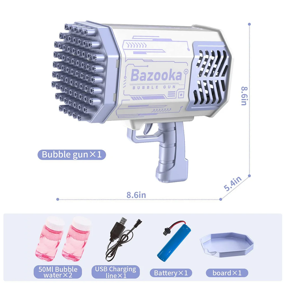 More Attractive Outdoor Toy - This bazooka bubble gun with LED rainbow lights, It can be used for outdoor parties at night, the perfect combination of LED lights and bubbles easily creates a dreamy and romantic atmosphere. This is a surprise that will never be forgotten.