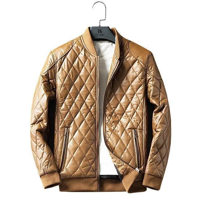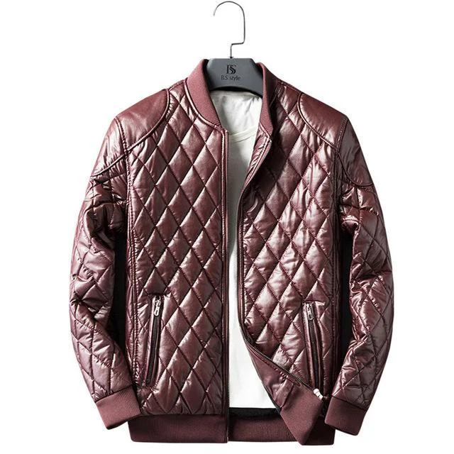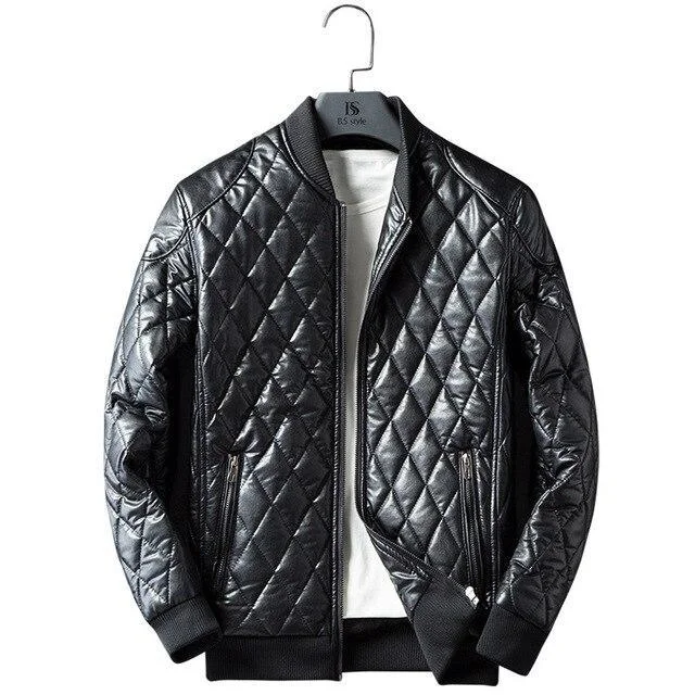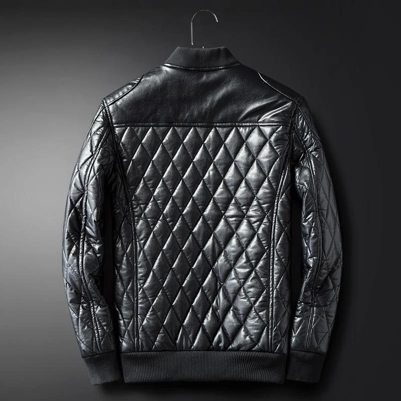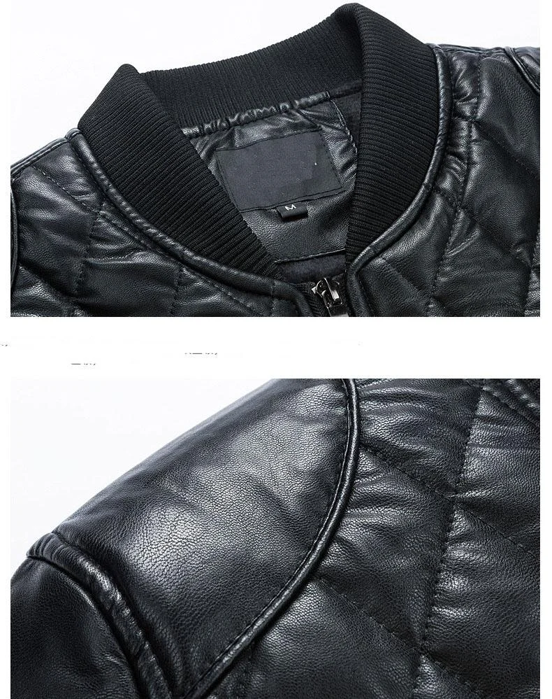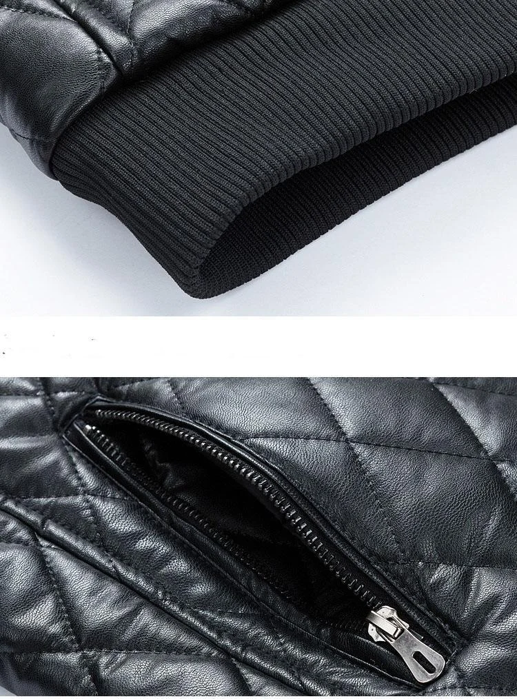 Add some texture to your outerwear collection with the Diamond Trim Leather Bomber Jacket. Its faux leather fabric is lined with soft faux shearling trims. Its front zipper closure fastening feels snug and will easily elevate any outfit in your wardrobe. Simply match yours with skinny jeans for a complete look.