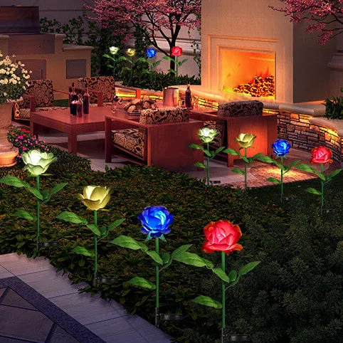 Home Garden Rose Solar LED Grounding Outdoor Light