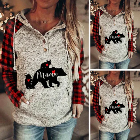 Mama Bear Hoodie Plaid Hooded Sweatshirt Sweater
