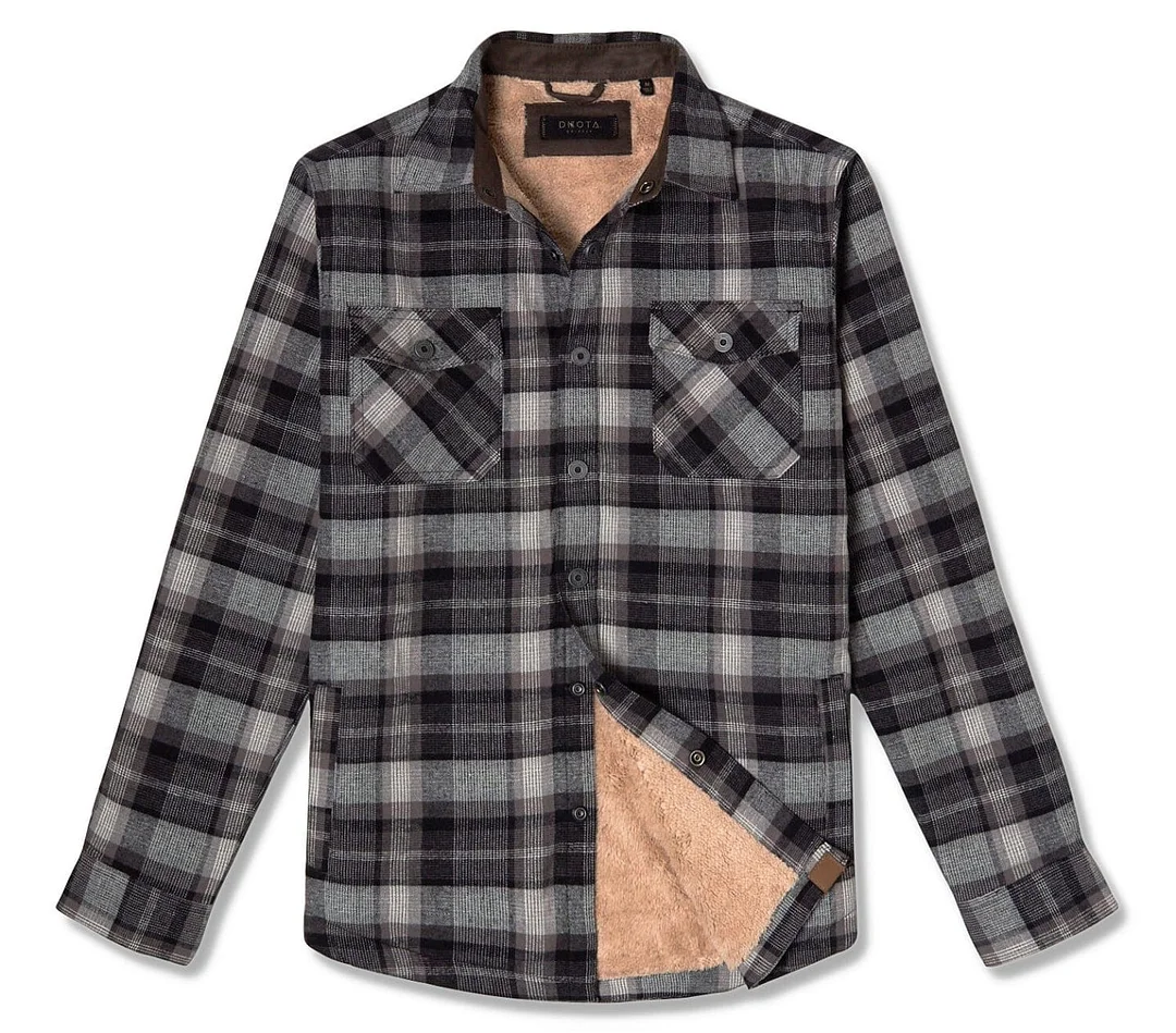 Men's Grey Sherpa Lined Plaid Shirt Jacket