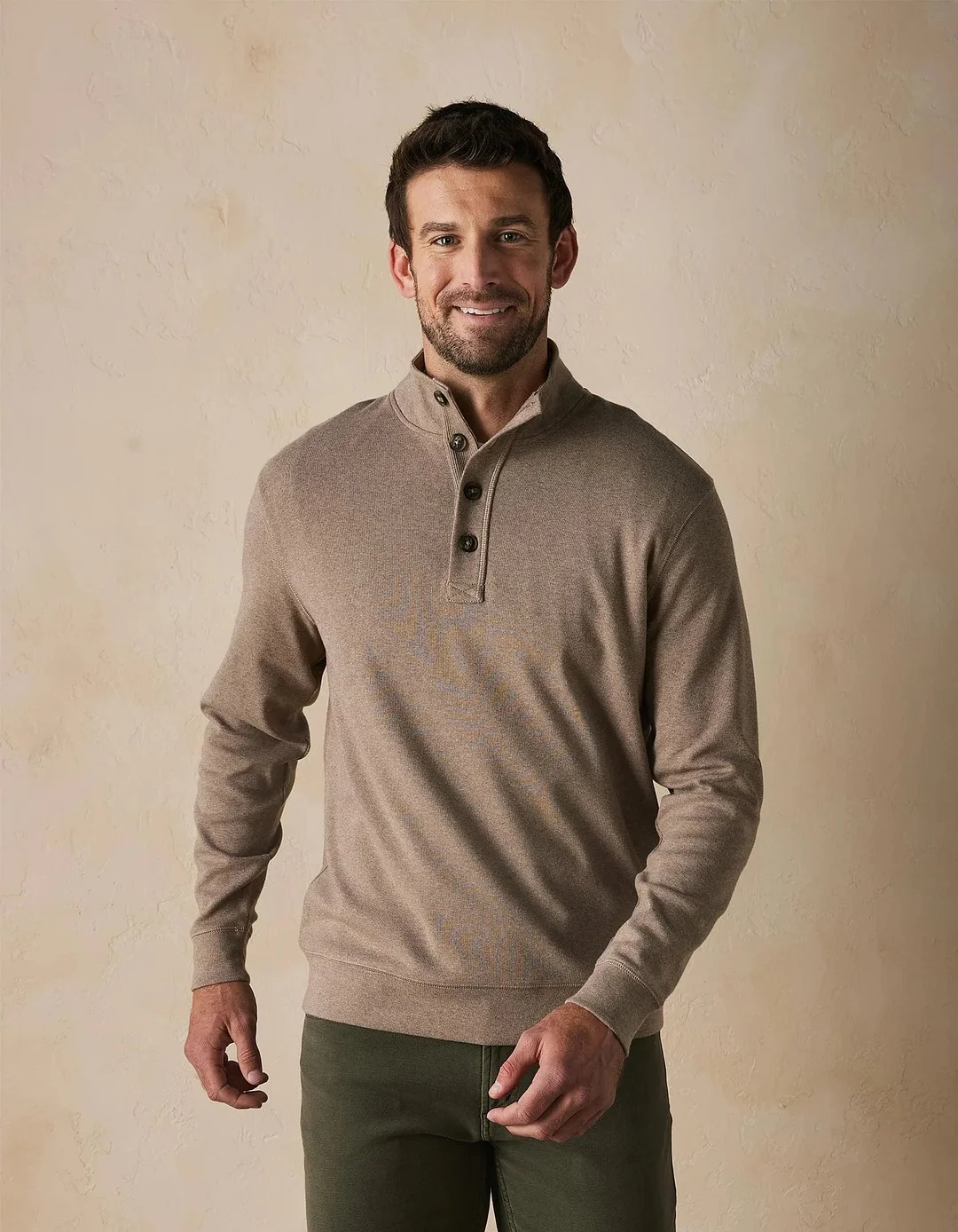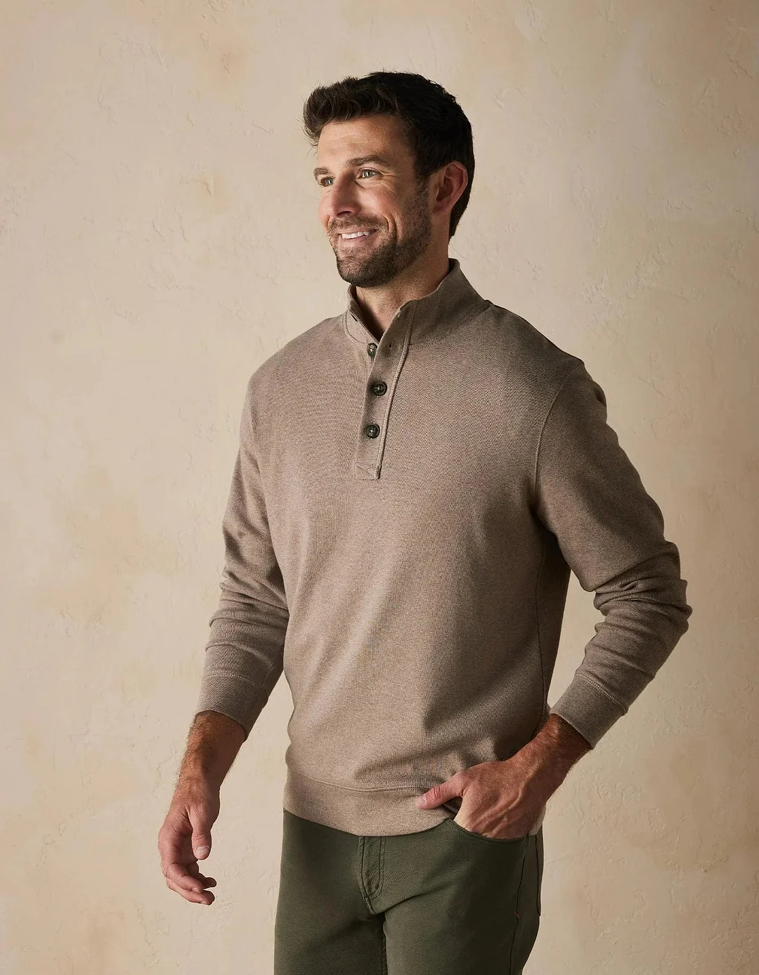 - Buttoned mock-neck collar