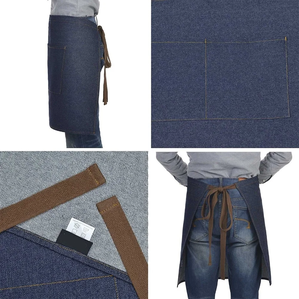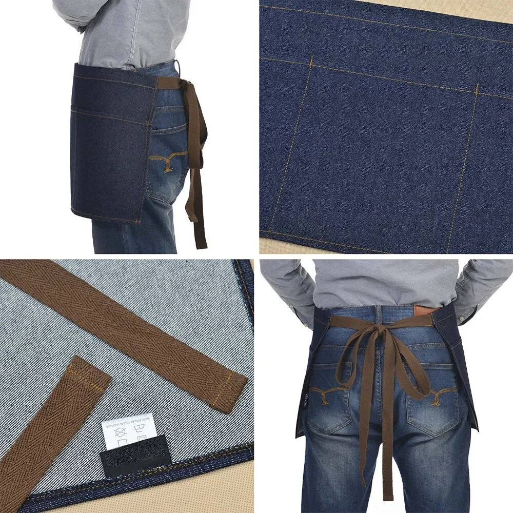 Unisex Waist Denim Apron|Vintage Half Cooking Bar Aprons