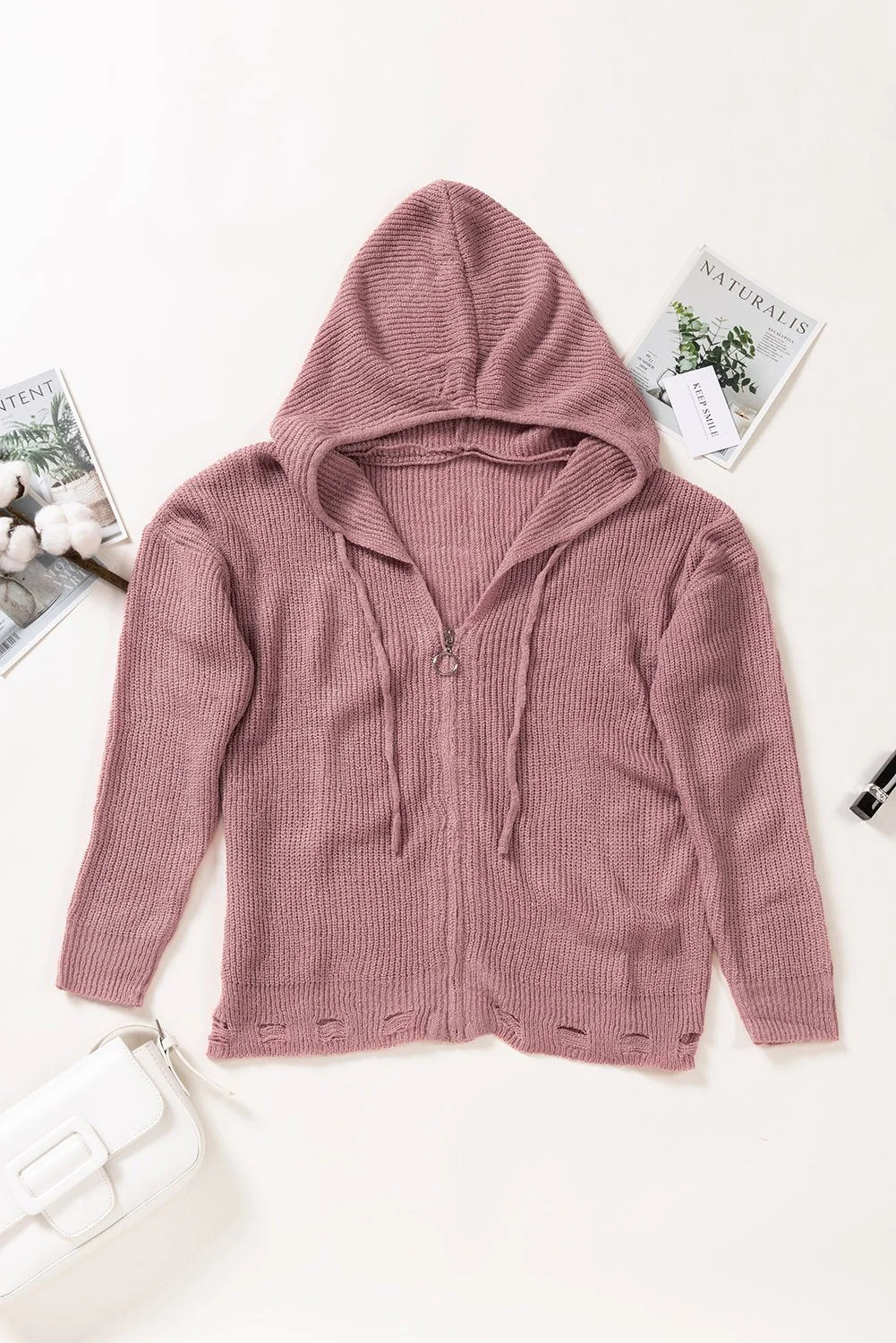 •The loose hemline with frayed holes detailing