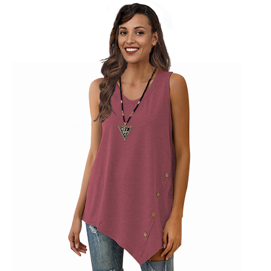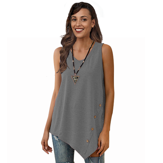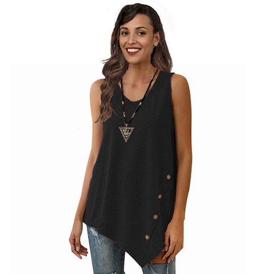 Sleeveless Top Irregular Button U-Neck Vest Women's Clothing