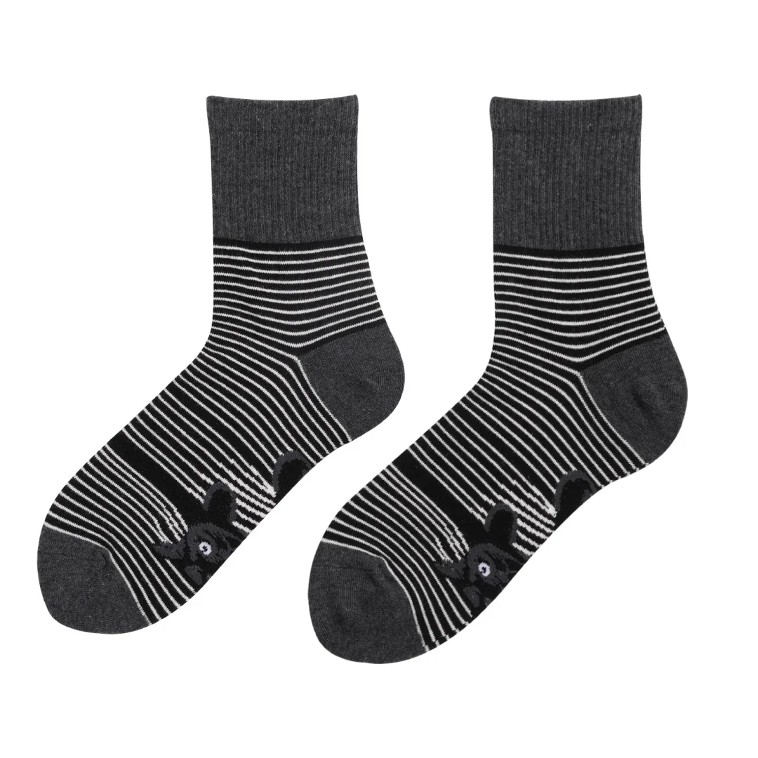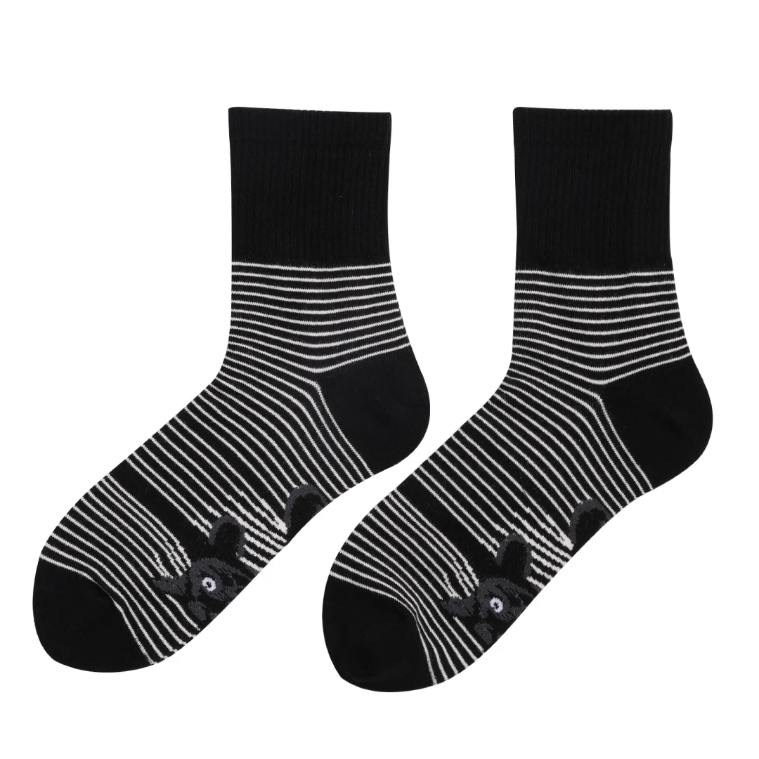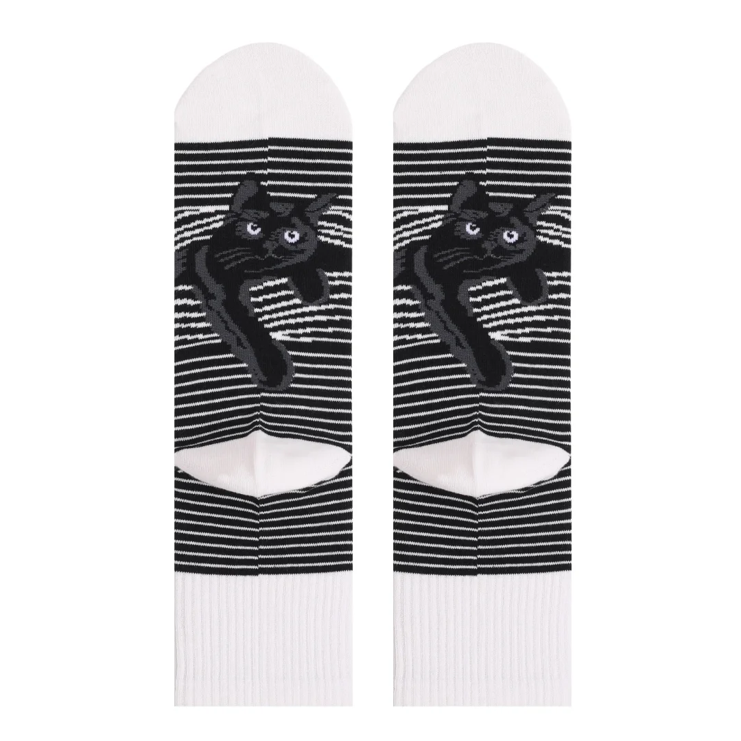 One of the standout features of our Black And White Striped Cat Print Socks is their versatility.