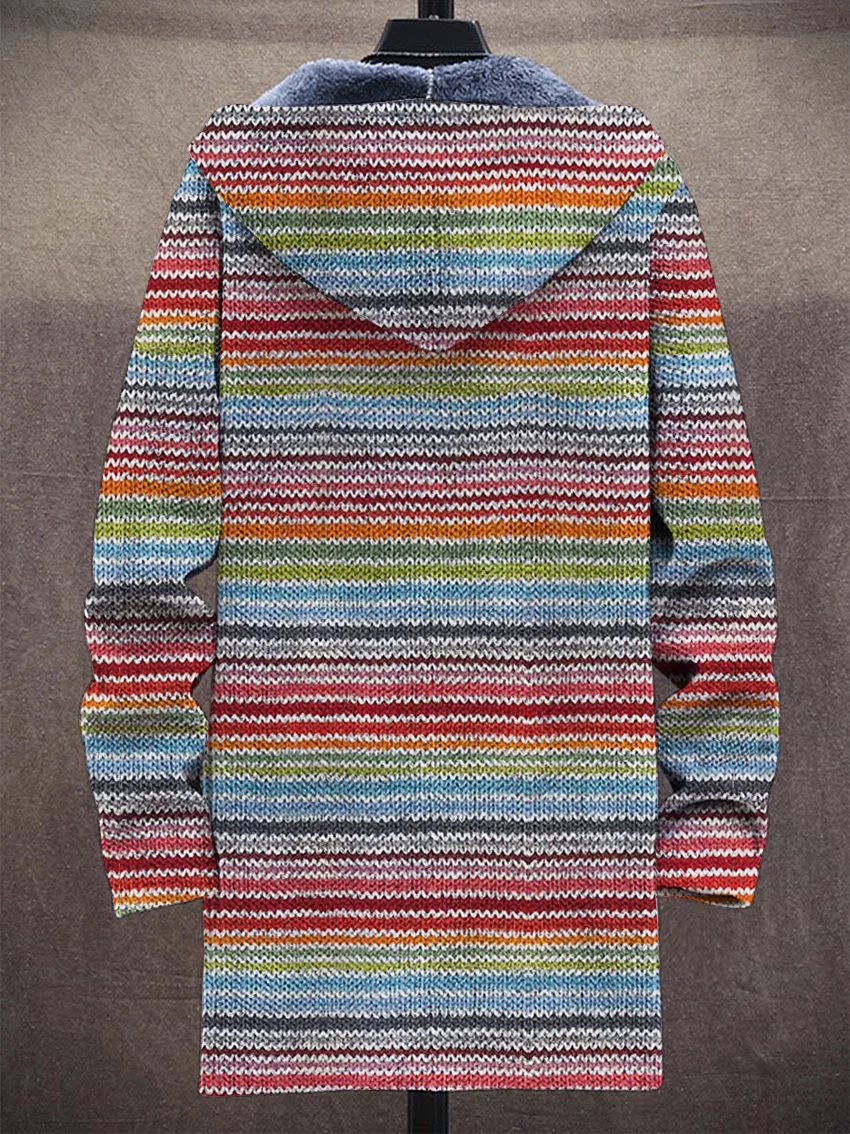 Unisex Rainbow Stripe Retro Colourful Thick Sweater Coat Cardigan