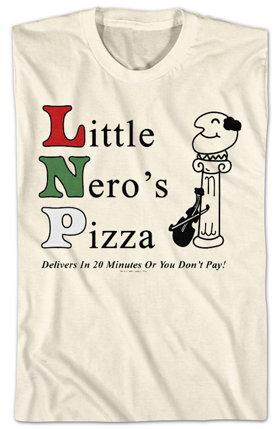Everyone will immediately know you are a fan of the 1990 holiday classic starring Macaulay Culkin when you wear this Little Nero's Pizza Home Alone T-Shirt!
