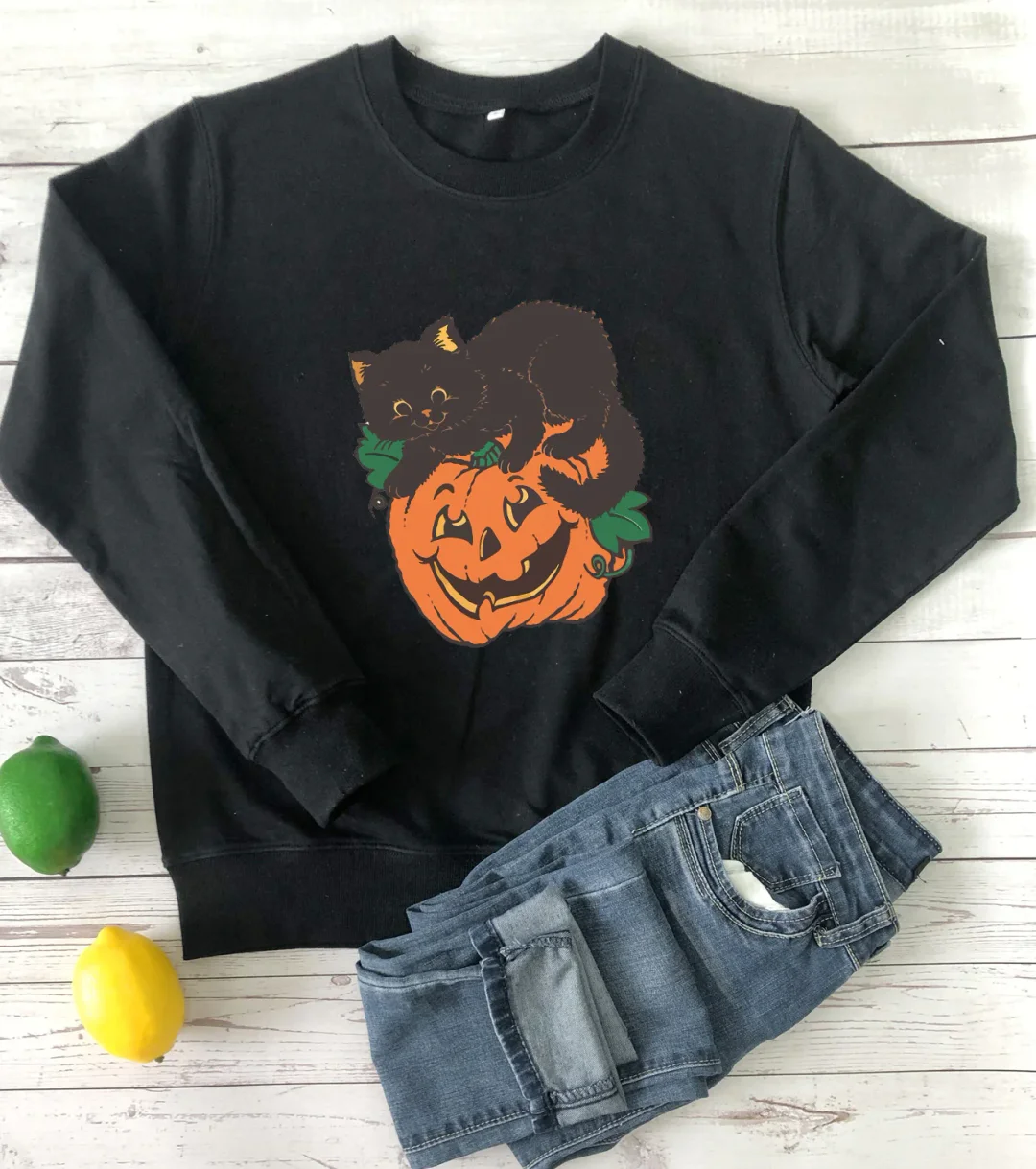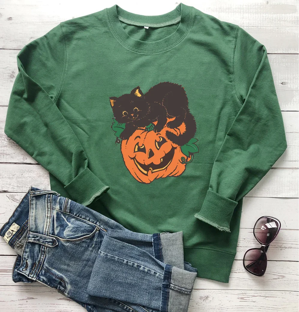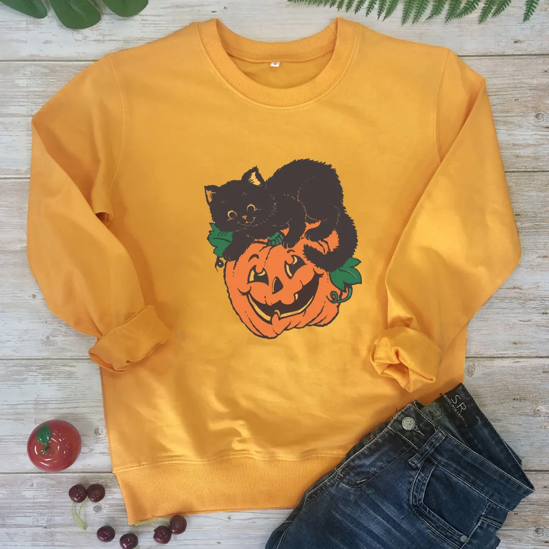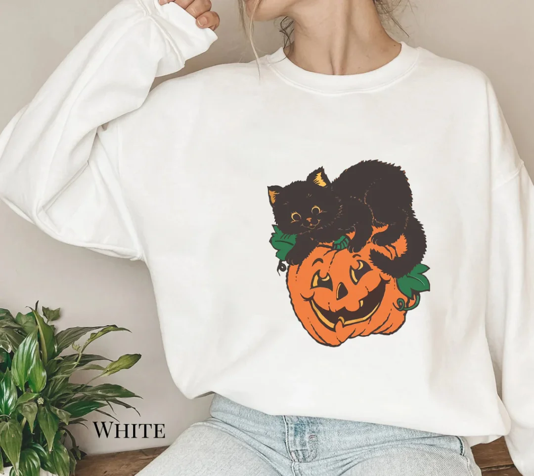 🎃Women's Crew Neck Sweatshirt Halloween Pumpkin Cat! 🐱👻🍂