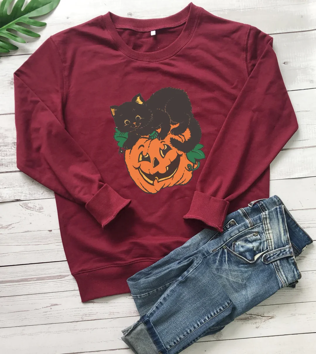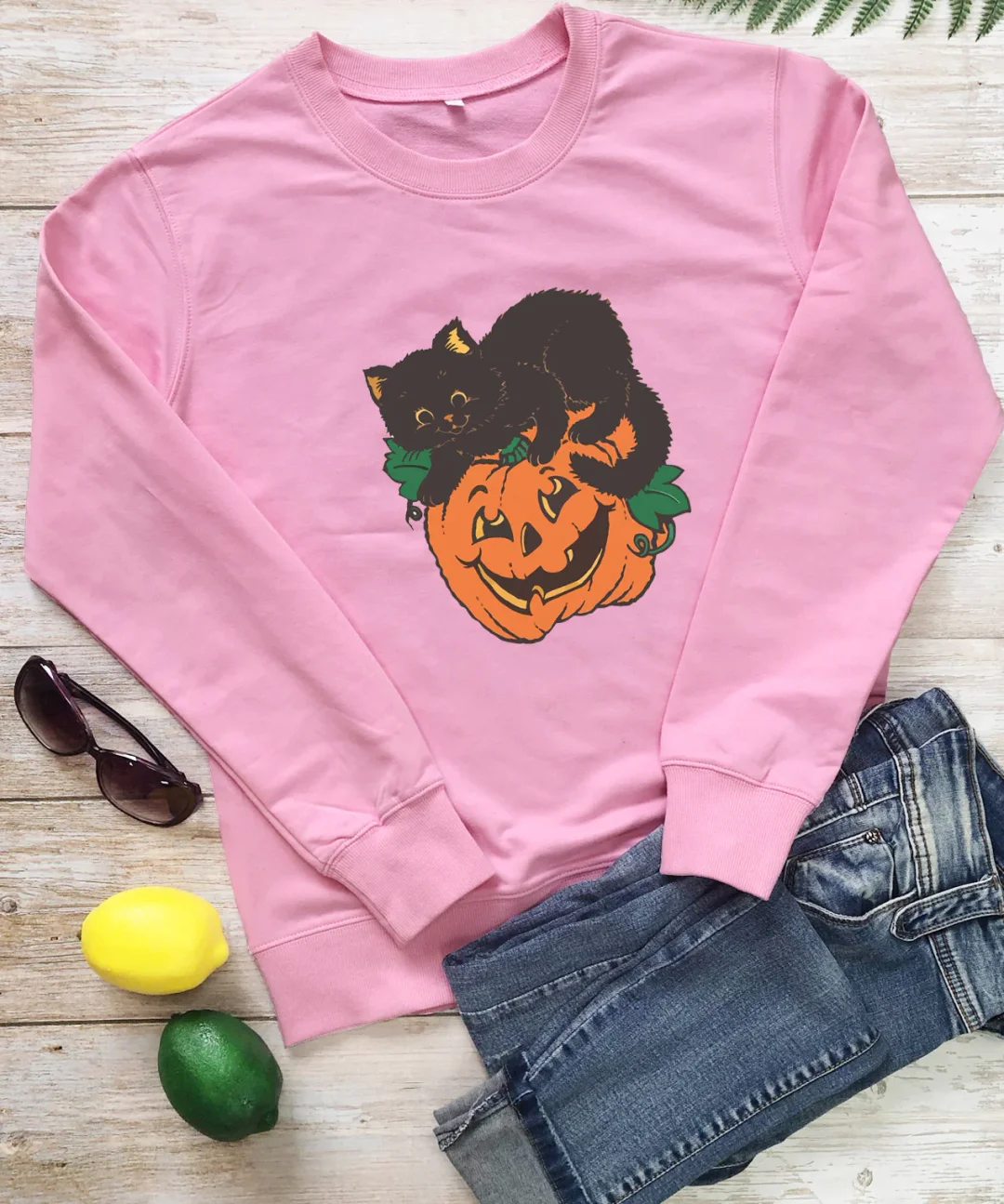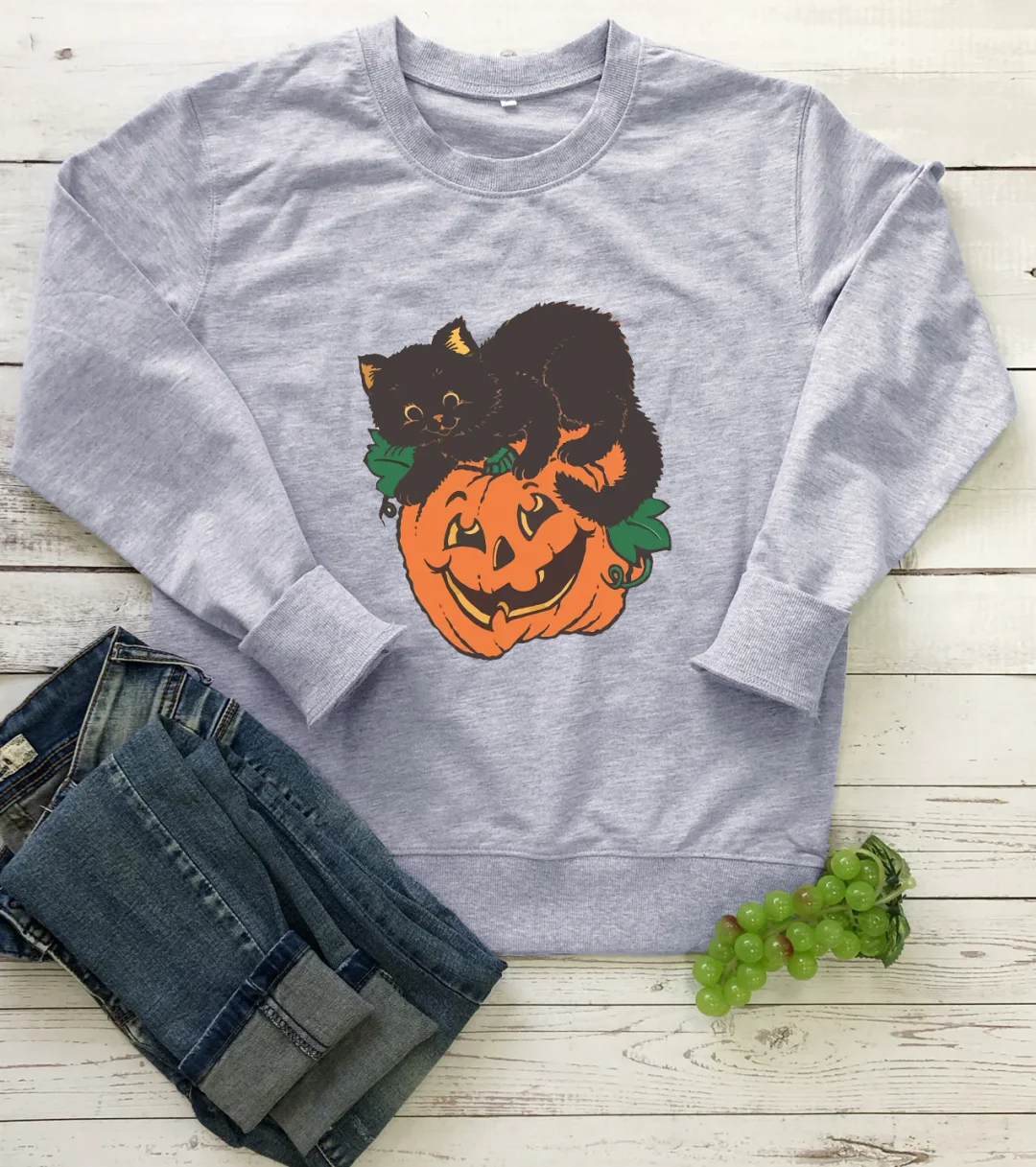 🎃Women's Crew Neck Sweatshirt Halloween Pumpkin Cat! 🐱👻🍂