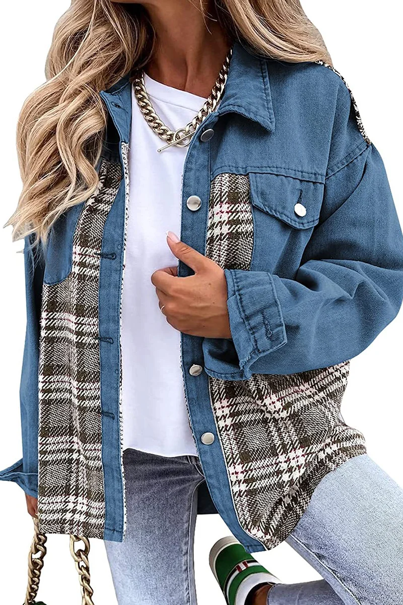Material:The plaid Jean Coat is made of soft and durable denim fabric,high quality and comfortable to wear.Trendy and Classic Women Jean Coat will pair well with any outfit. Such as skirts, dress, Jeans,leggings.