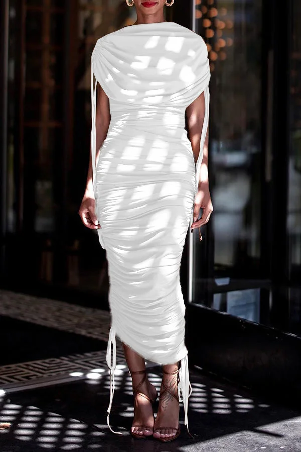 Drawstring Ruched Dress: This dress is crafted from a comfortable premium cotton blend. The fabric feels very nice and soft against the skin.