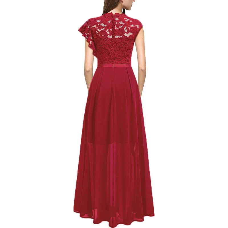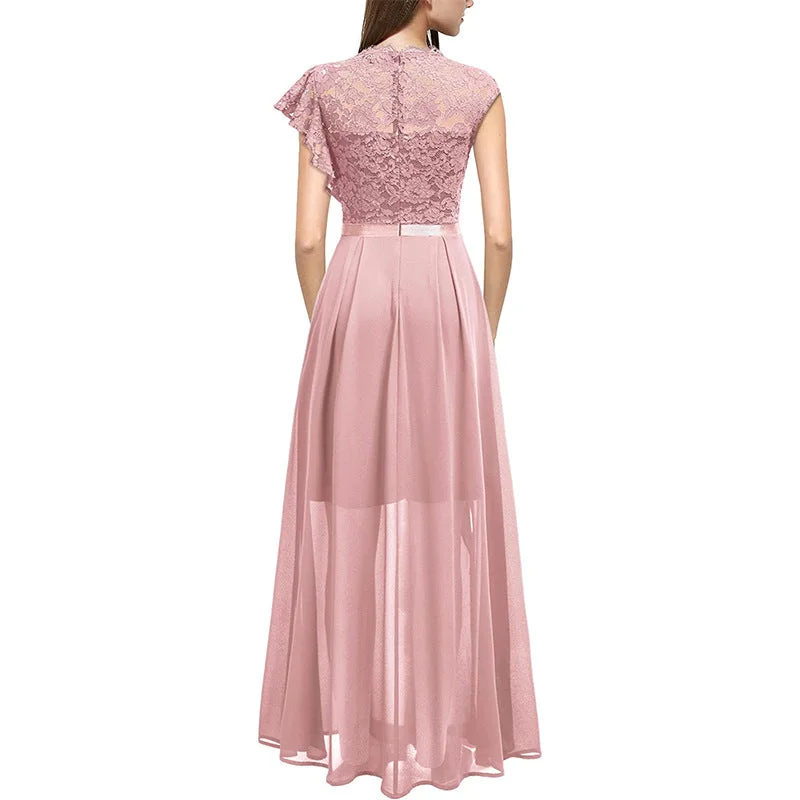 50% NYLON, 30% RAYON, 20% POLYESTER; LINING: 100% POLYESTERZipper closureHand Wash OnlyLong A-Line Rosette DressShort Sleeves