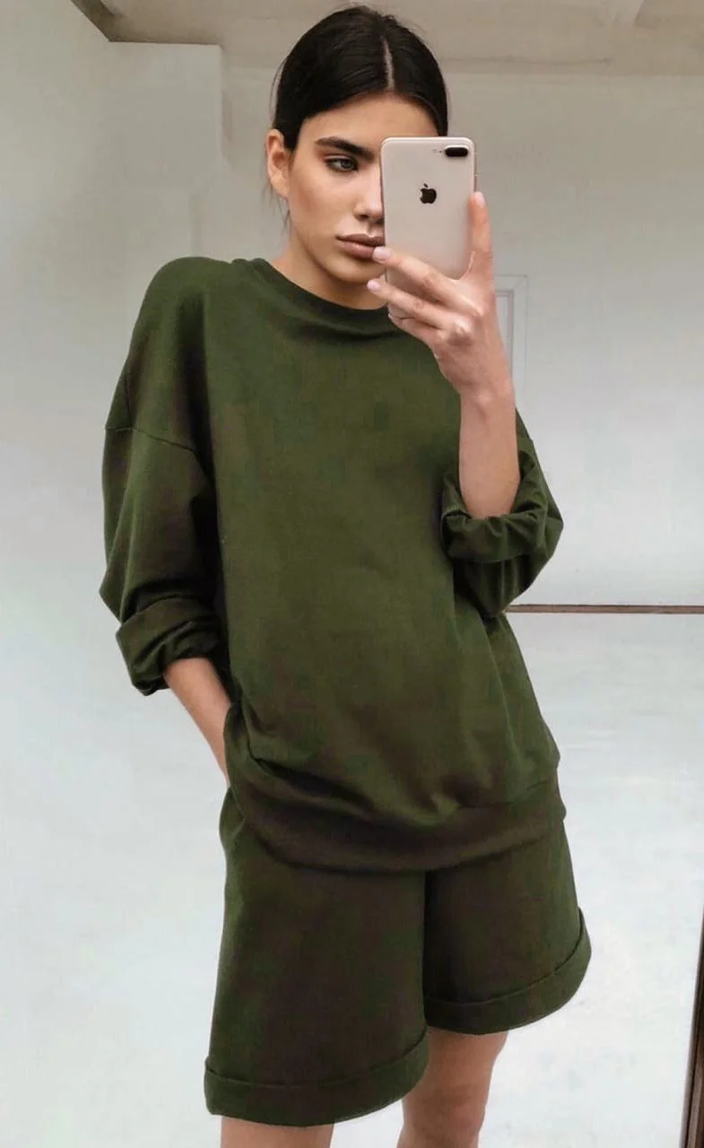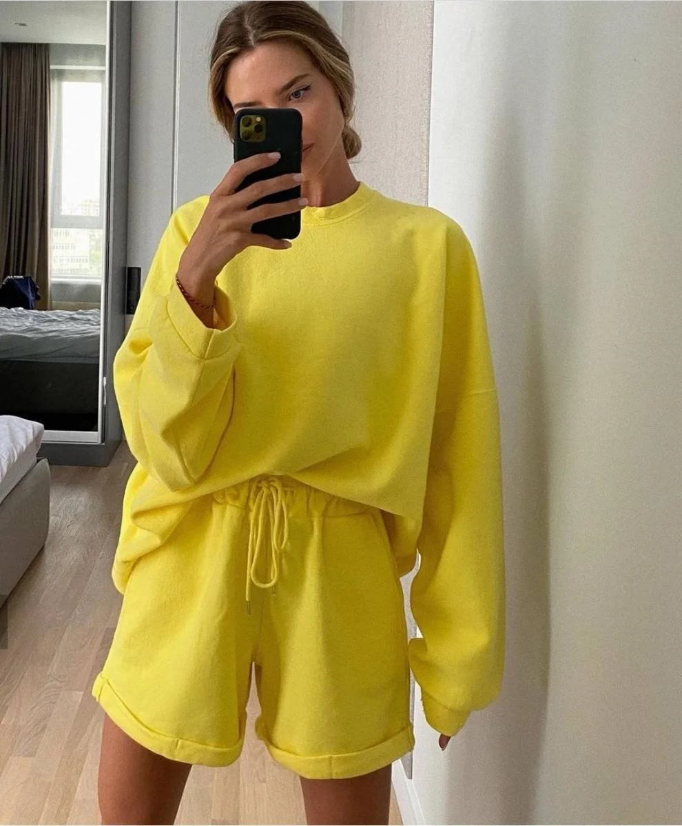Women's Long Sleeve Shorts Sports Suit