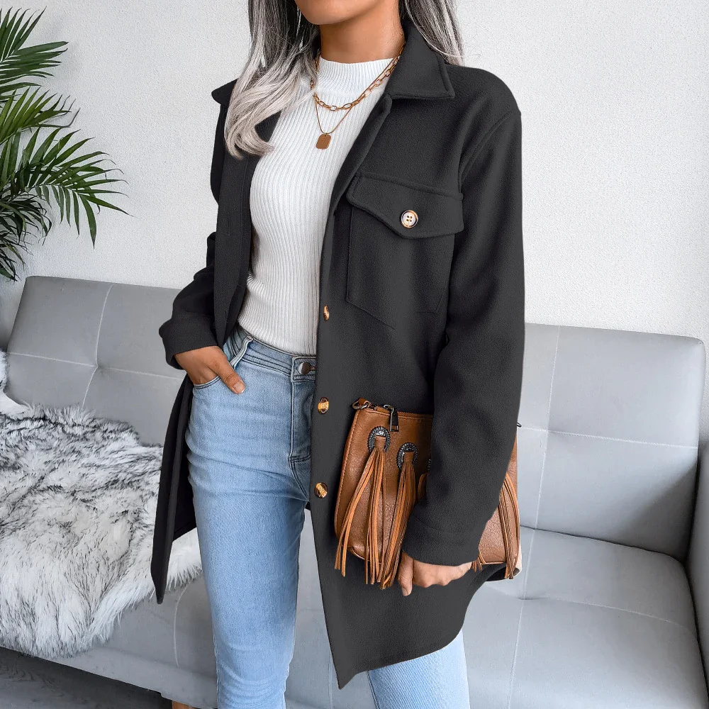 Designed with a loose version, this shirt jacket provides a relaxed and comfortable fit that flatters all body types. Its minimalist design exudes effortless style, making it a versatile piece that can be dressed up or down for various occasions.