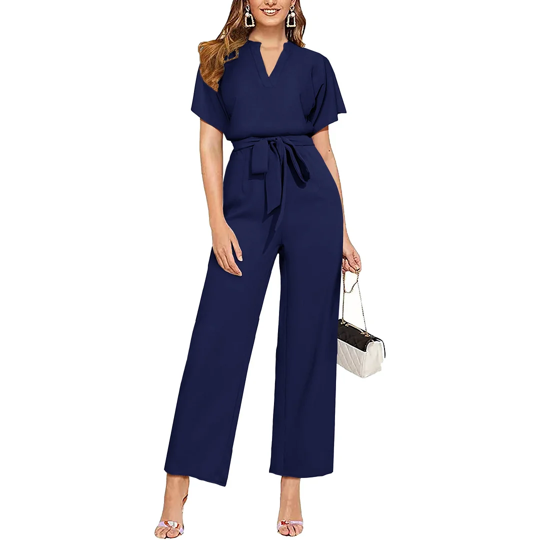 STYLISH FEATURES: The Classic Wrap V Neck Jumpsuit Shows Your Delicate Collarbone, Sexy Yet Classy. This Pants Romper With Belt Highlights The Charm Of Women And Is Full Of Elegance. Women Wide Leg Jumpsuits Trim Your Curves To Perfection, More Loose Fit To Wear. Short Sleeve Rompers With Two Side Pockets, More Convenient To Carry Small Items. Ladies One Piece Outfits Features In Solid Color, Simple And Stylish, Never Out Of Fashion.