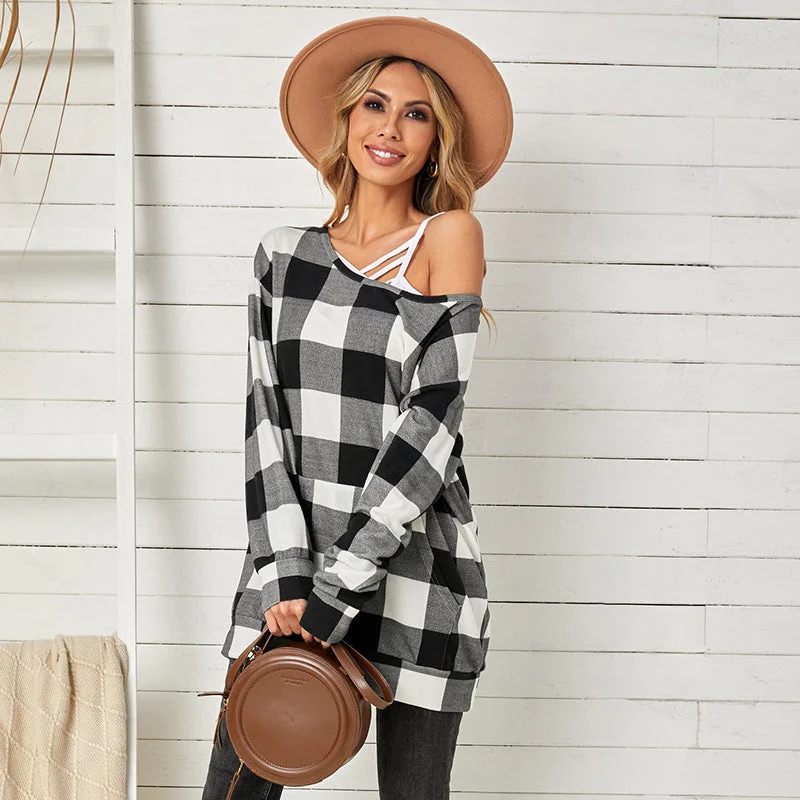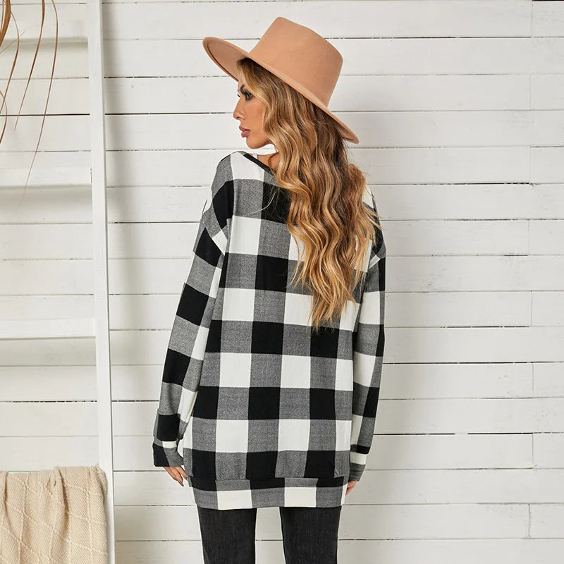 Women's Stitching Round Neck Mid Length Casual Pullover Sweater