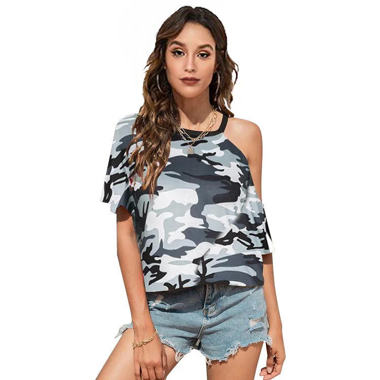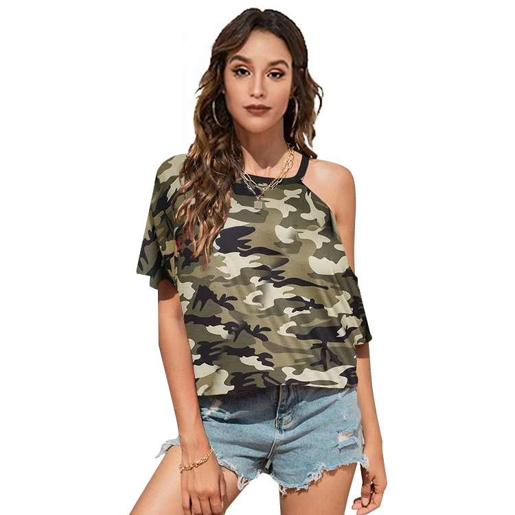 Women's Summer Off-shoulder Camouflage Short Sleeved T-shirt