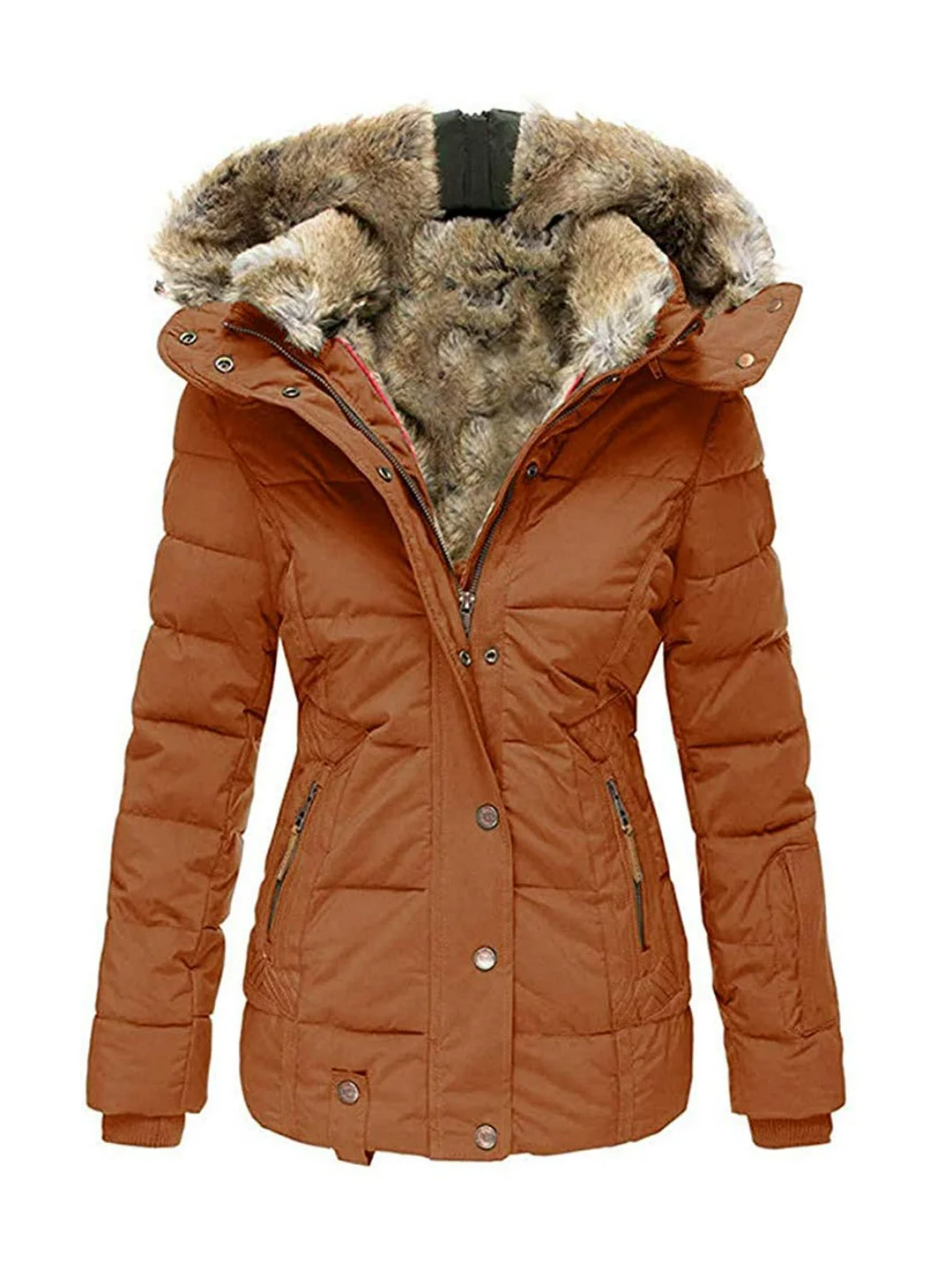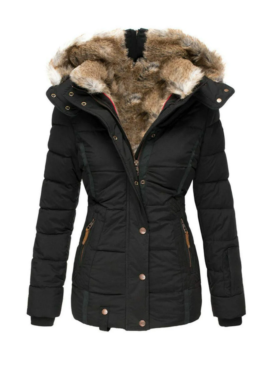 2.Quality windproof fabric and big fuzzy lined hood with faux fur trim can help to keep cold out and prevent heat from losing.