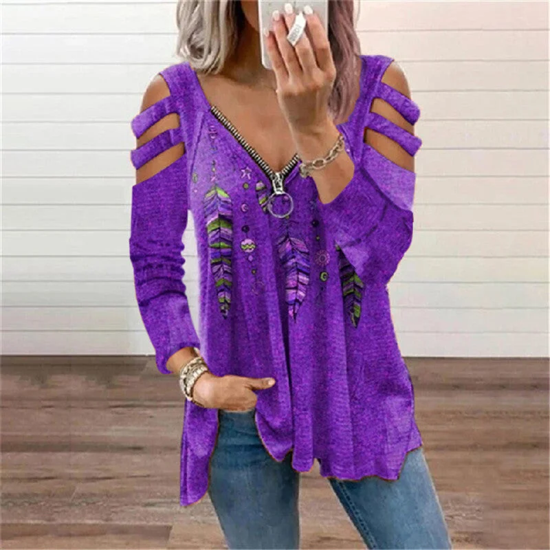 Women's Zip Pullover Long Sleeve Loose T-Shirt